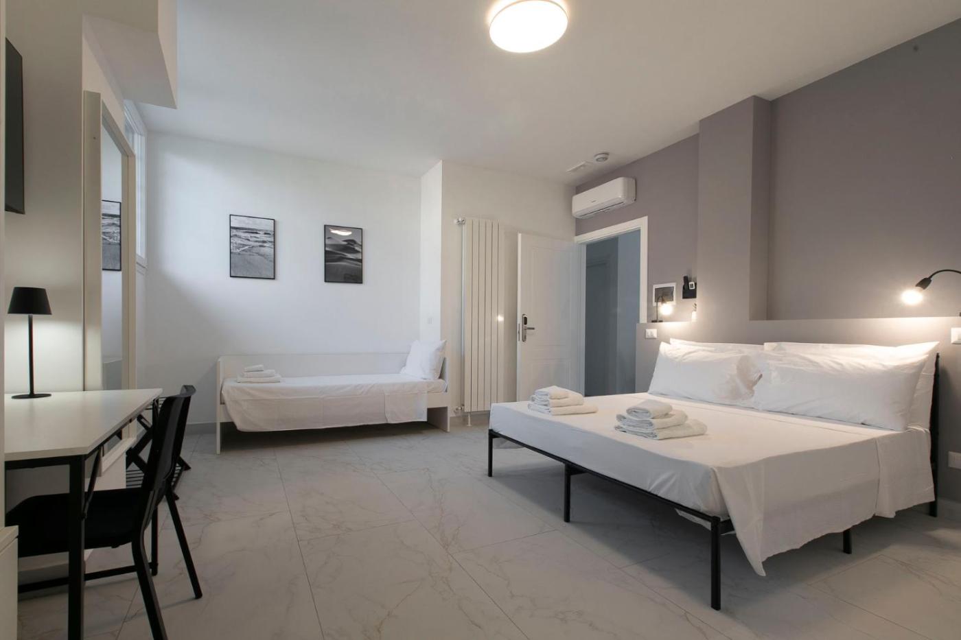 Tutte le camere prevedono un impianto di aria condizionata, un frigorifero, un microonde e una macchina da caffè, oltre a doccia,di cortesia e armadio. Le camere hanno il bagno privato, lasciugacapelli e le lenzuola.