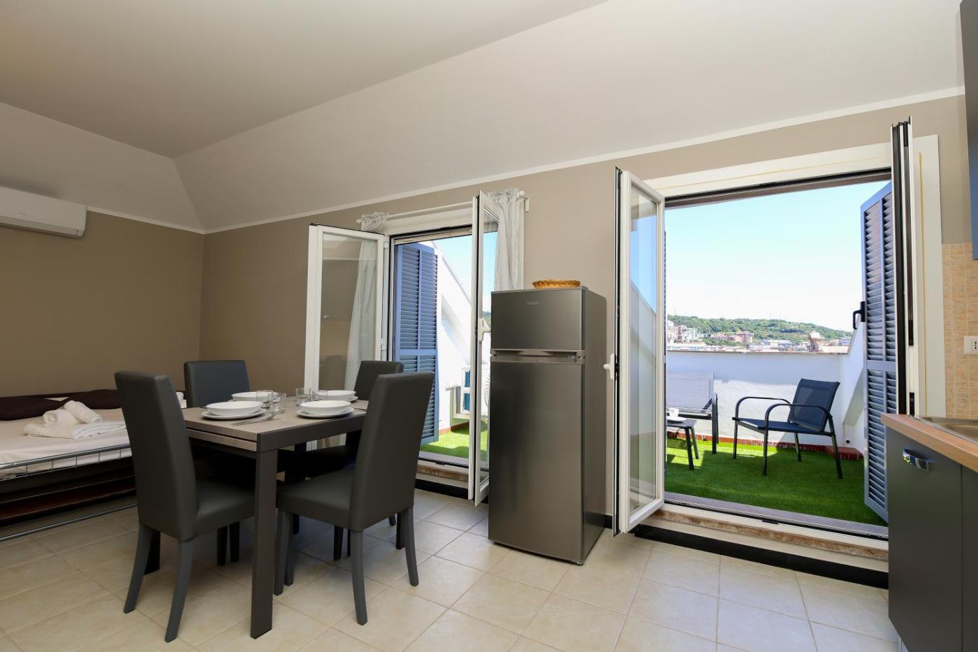 Appartamento con 1 Camera da Letto e Terrazza. This spacious apartment is comprised of 1 living room, 1 separate bedroom and 1 bathroom with a shower and free toiletries. The well-fitted kitchen features a stovetop, a refrigerator, kitchenware and an oven. The air-conditioned apartment offers a flat-screen TV, a washing machine, a tea and coffee maker, a seating area as well as sea views. The unit offers 3 beds. ;