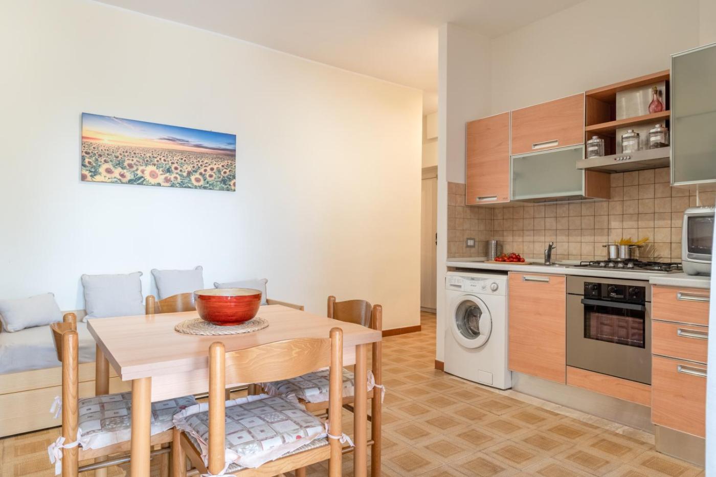 Appartamento con 1 Camera da Letto. This apartment consists of 1 living room, 1 separate bedroom and 1 bathroom with a shower and free toiletries. Guests can make meals in the kitchen that is equipped with a stovetop, a refrigerator, kitchenware and an oven. The apartment provides air conditioning, a washing machine, a seating area as well as a terrace with sea views. The unit offers 2 beds.