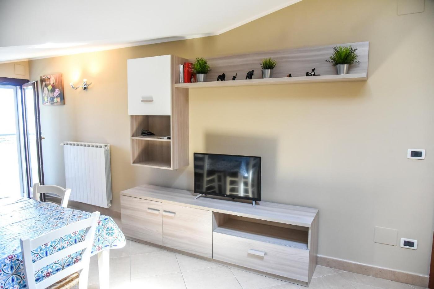Appartamento con 1 Camera da Letto. This spacious apartment consists of 1 living room, 1 separate bedroom and 1 bathroom with a bath and free toiletries. The fully equipped kitchen features a stovetop, a refrigerator, kitchenware and an oven. The air-conditioned apartment provides a flat-screen TV with cable channels, a washing machine, a coffee machine, a seating area as well as sea views. The unit offers 2 beds.
