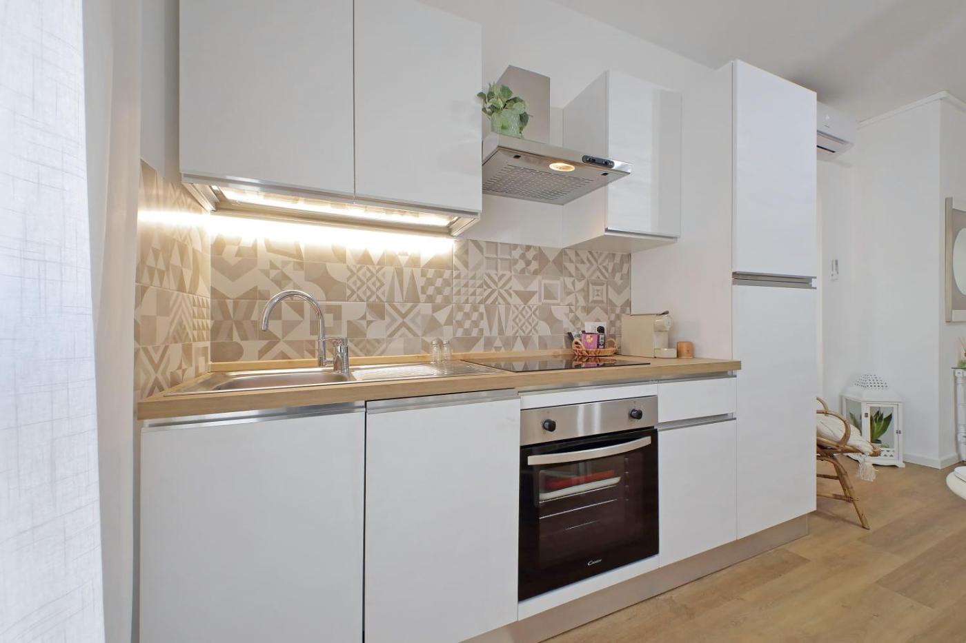 Questo appartamento con aria condizionata comprende 1 camera da letto, un soggiorno, una cucina con utensili, frigorifero e macchina da caffè, e 1 bagno con bidet e doccia. Presso questo appartamento troverete asciugamani e lenzuola tra i servizi offerti.