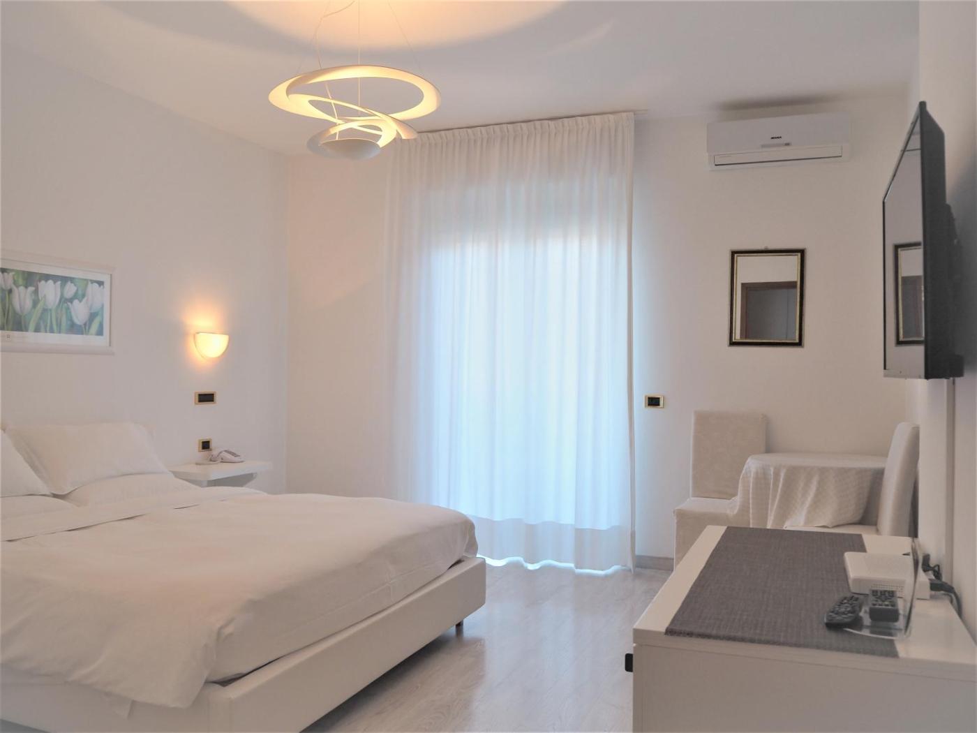 Camera Matrimoniale Superior con Vista Lago. Ampia camera dotata di pavimenti in parquet, balcone con vista sul lago e bagno interno. Dispone di connessione WiFi gratuita, minibar e TV a schermo piatto con canali Sky.