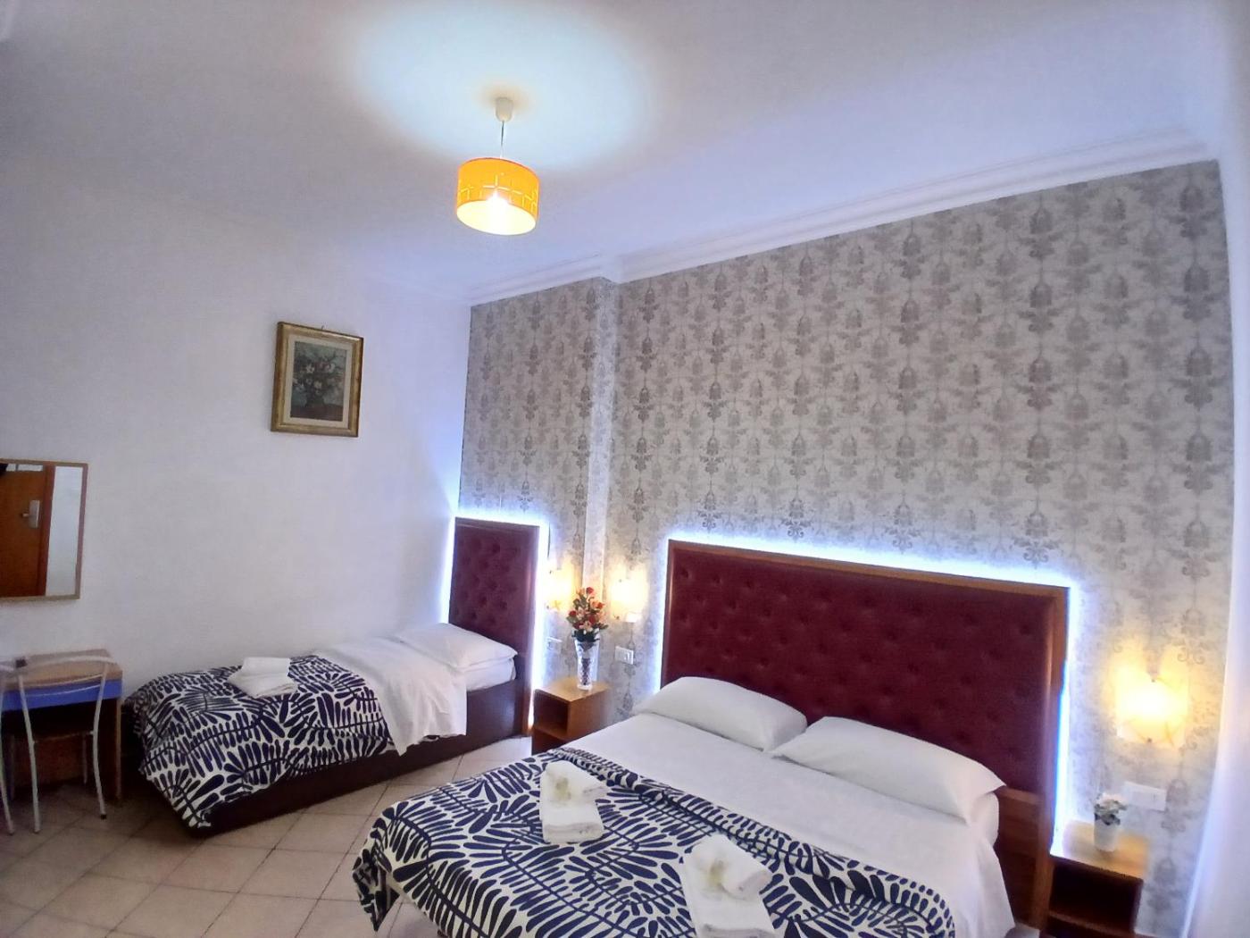 Camera Tripla con Bagno. Featuring free toiletries, this triple room includes a private bathroom with a bath, a shower and a hairdryer. The air-conditioned triple room features a flat-screen TV, a private entrance, soundproof walls, a tea and coffee maker as well as garden views. The unit has 2 beds. ;
